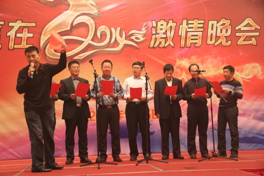 年終總結(jié)大會由副總經(jīng)理祝奕主持?偨(jīng)理孫學(xué)良和董事長趙劍平分別進行了發(fā)言。